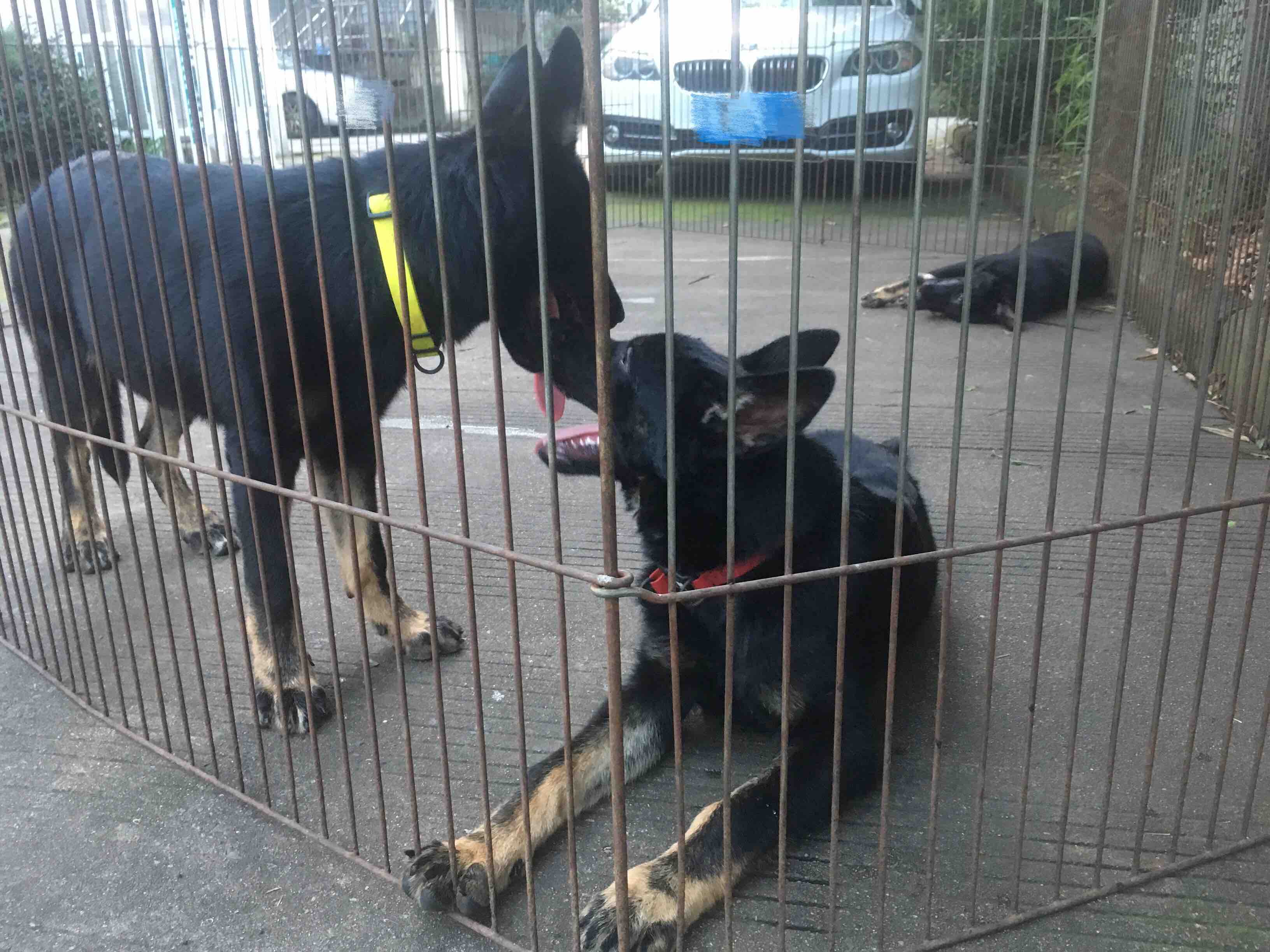 我这窝小狗,小母犬全是低位太极色,小公犬全是全黑色。小公犬目前在训犬师地方做培训。她们的母亲是全黑色,父亲爱神是太极色。小母犬颜色遗传父亲爱神,小公犬颜色遗传母亲,这种颜色分配遗传概率非常非常低。很优秀的小犬。